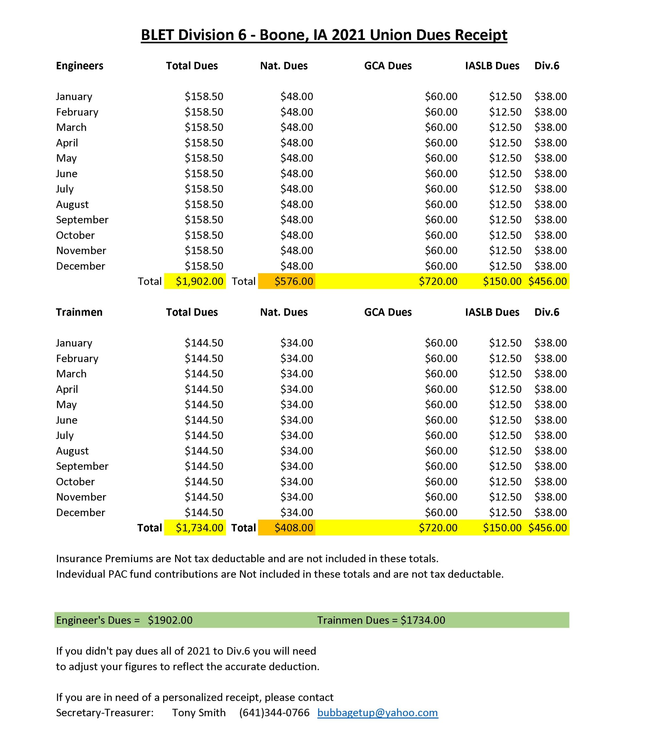 2021 Dues Receipt